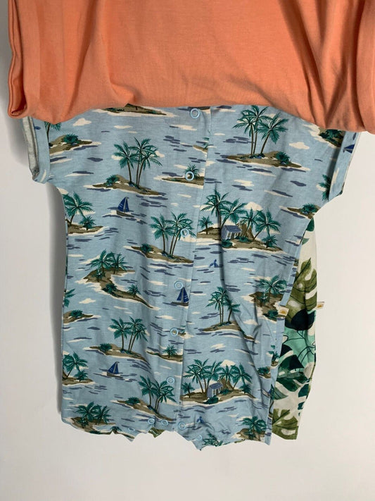 Next Baby 12-18M Organic Cotton 3 Pack Romper Tropical Floral Summer Beach