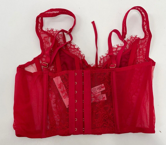 Victoria's Secret Womens S Lipstick Unlined Lace-Up Corset Top Lingerie Bustier