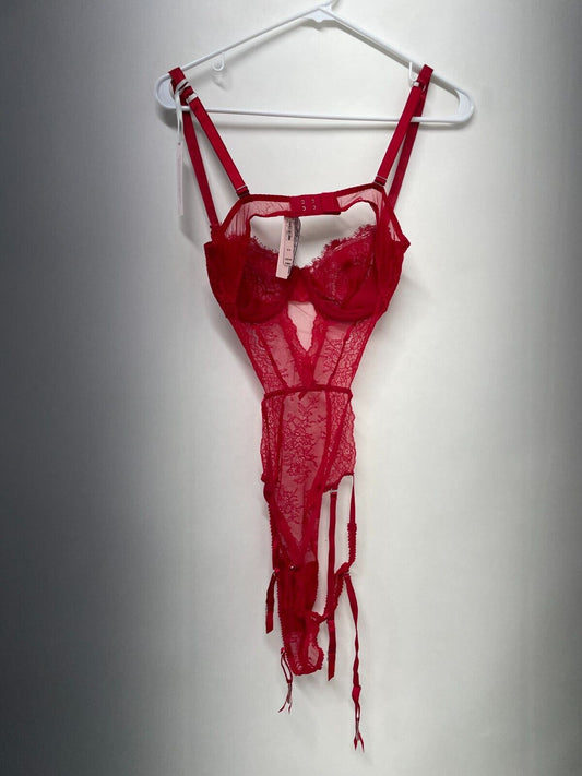 Victoria's Secret Womens M Wicked Unlined Shine Strap Garter Teddy Lipstick Red