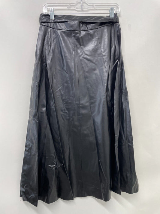 Zara Womens M Faux Leather Pleated Midi Skirt Black High Waisted 3046/331/800