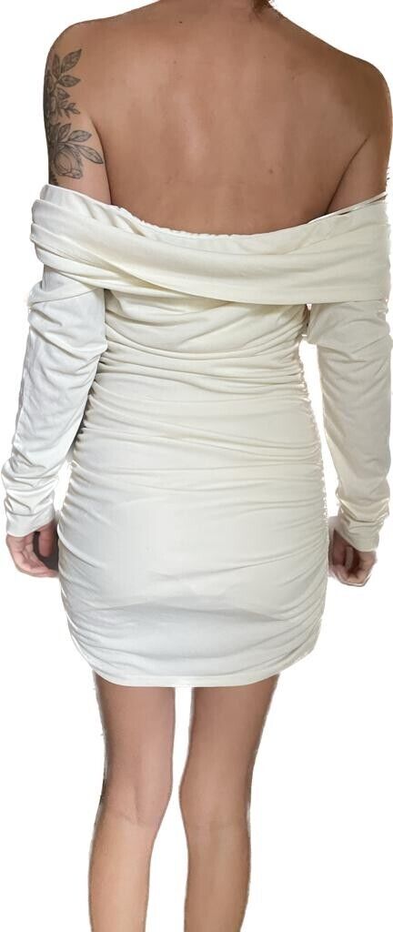 Zara Womens S Off Shoulder Short Mini Dress w/ Ruching 3067/320 Oyster White