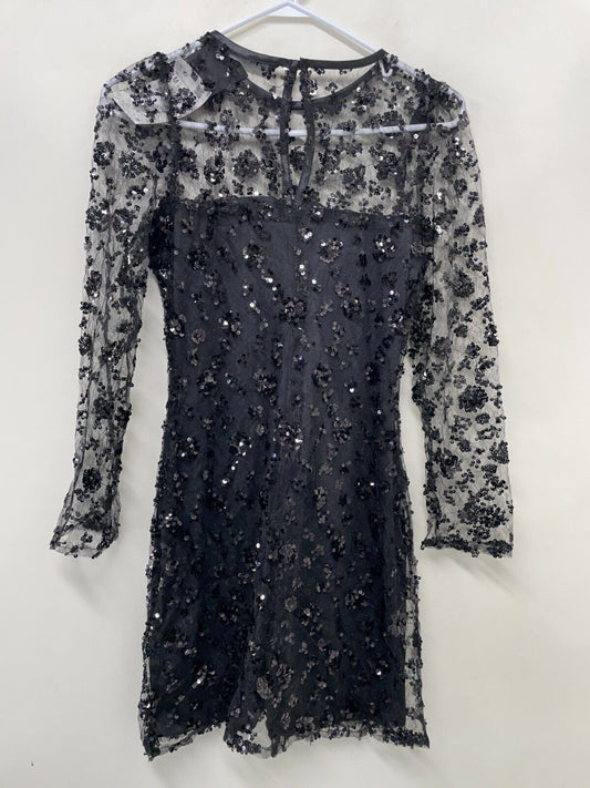 Zara Womens M Short Sequin Cocktail Dress Black Sheer Long Sleeve 0387/191/800