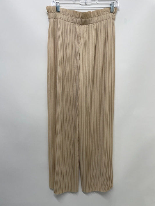 Zara Womens M Pleated Paperbag Wide Leg Trouser Pants Beige 4387/061