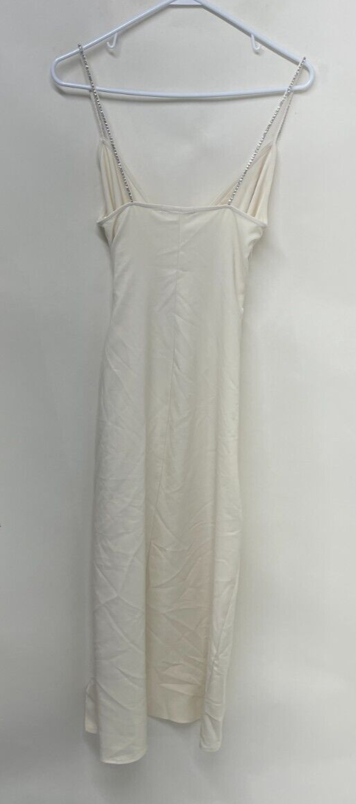 Zara Womens S Cocktail Dress Ivory Sparkly Rhinestone Strap Front Slit 2554/880