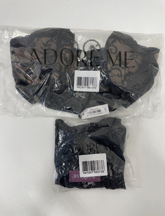 Adore Me Womens 34D/L Temperance Contour Balconette Bra & Cheeky Panty Set Black