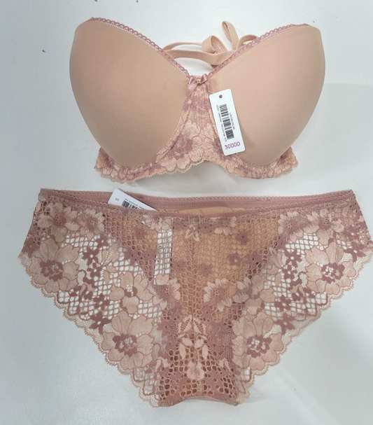 Adore Me Women's S/30DDD Kendil Push Up Strapless Bra & Panty Set Rose Smoke NWT