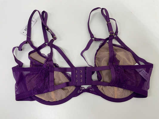 Adore Me Women's 36DDD Vianna Unlined Plunge Bra Plum Purple 10339 Lace Cage NWT