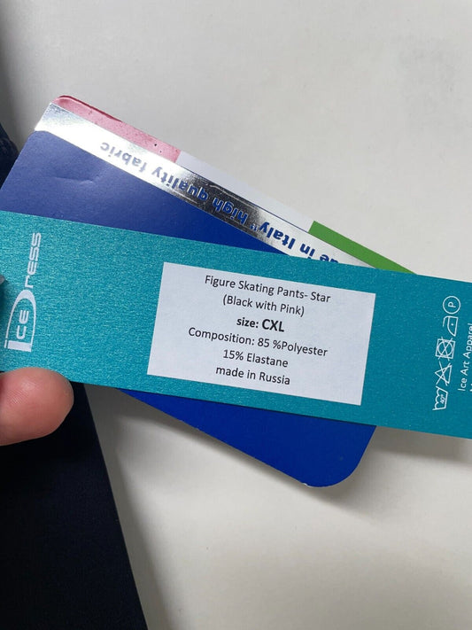 IceDress Girls CXL Figure Skating Pants Star Black with Pink Techno-Fabric NWT