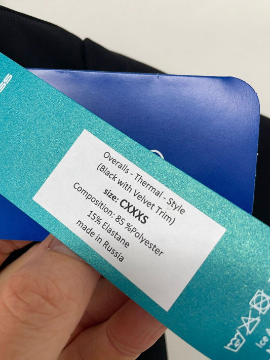 IceDress Girls Childrens XXXS Black Thermal Overalls Black Velvet Trim Ice Skate