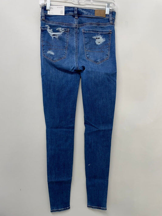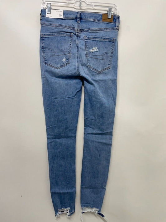 AE American Eagle Women 6 Long Ripped High Waisted Jegging Fresh Bright Blue