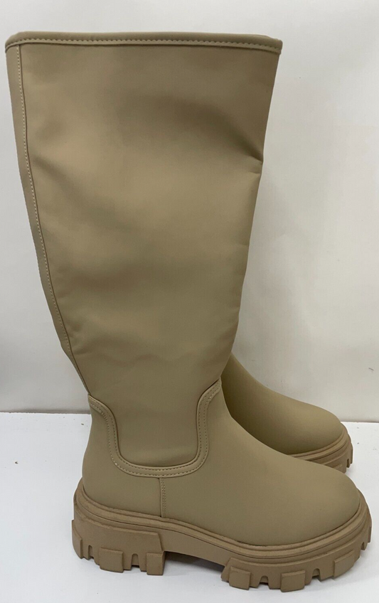 ASOS Design Womens 7 Wide Fit Carla Chunky Flat Knee Boots Cappuccino 116018597
