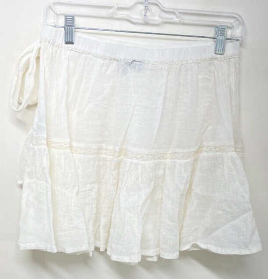 ASOS Design Womens 10 Rara Beach Skirt Ivory High Rise Tie-Waist 115845182