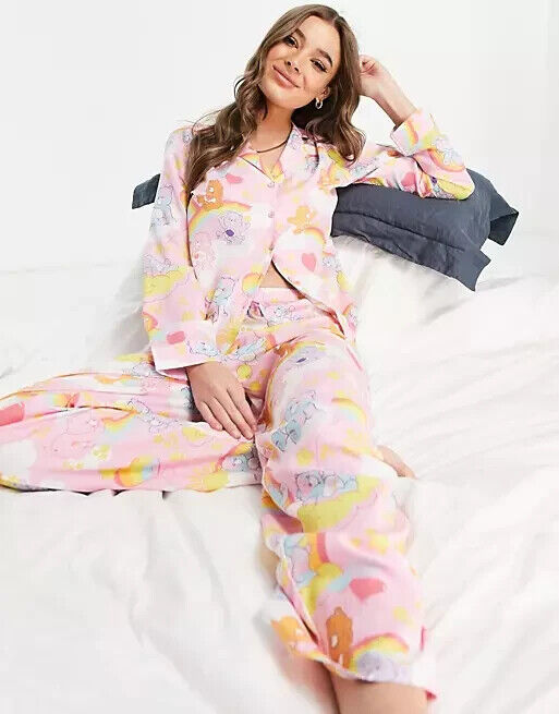 ASOS Design Womens 6 Care Bears Modal Shirt & Trouser Pajama Pant Set Pink