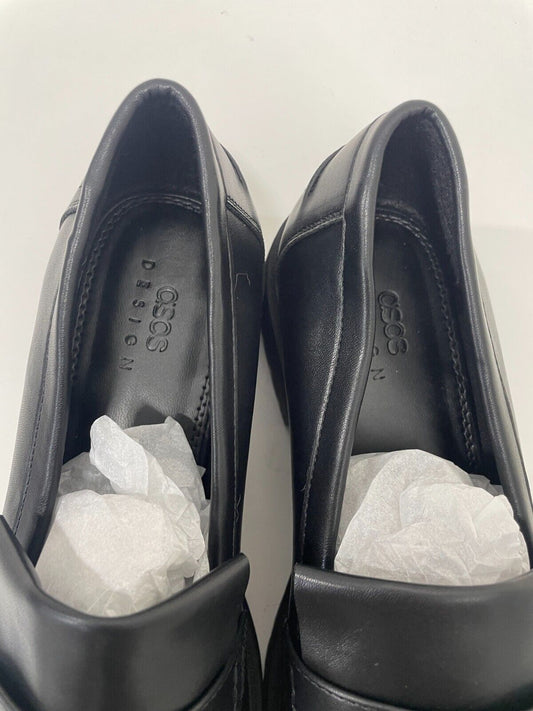 ASOS Women's 7 Melon Chunky Loafers Black Matte Faux Leather Y2K 90s Fringe NEW