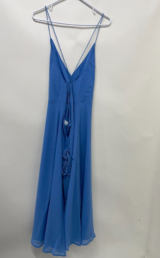 ASOS Women's 14 Cami Wrap Waist Midi Dress Lace Up Back Sky Blue 116446882 NWT