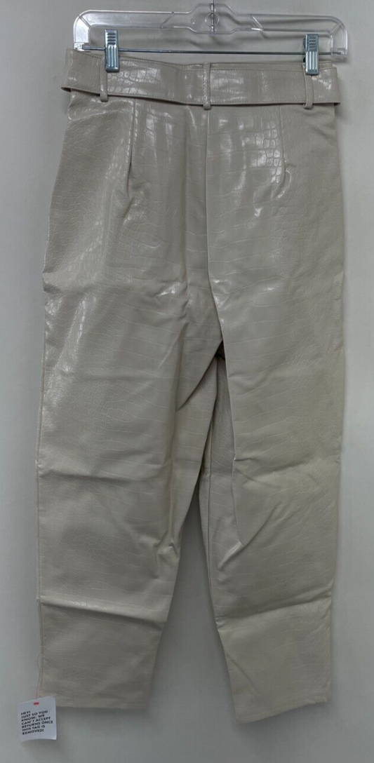 Asos Design Womens 4 Crocodile Faux Leather Belted Trouser Pant Ivory 118658472
