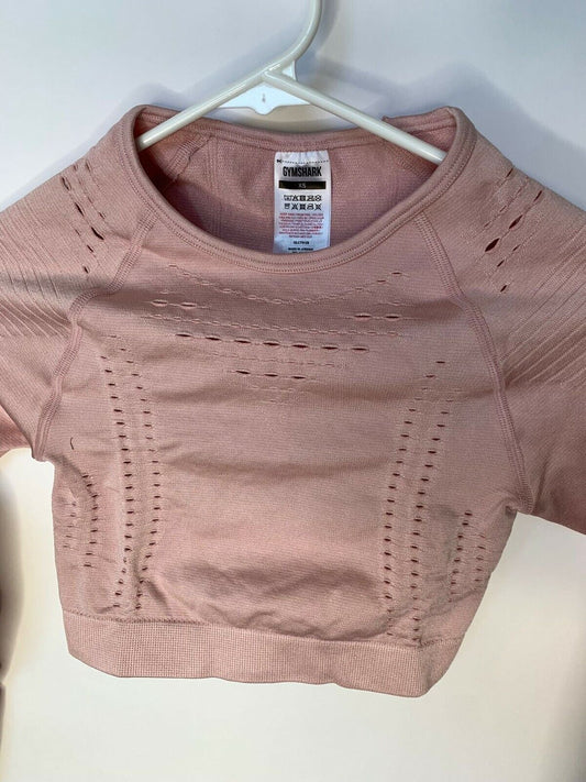 Gymshark Womens XS Glow Long Sleeve Seamless Crop Top Light Pink Perforated