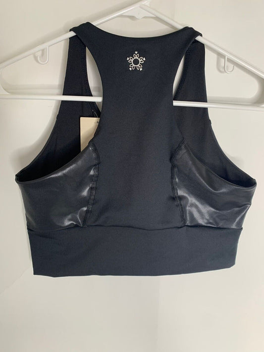Mariana Rosales Womens OS Black Eco-Friendly Black Crop Top Sports Bra Gym
