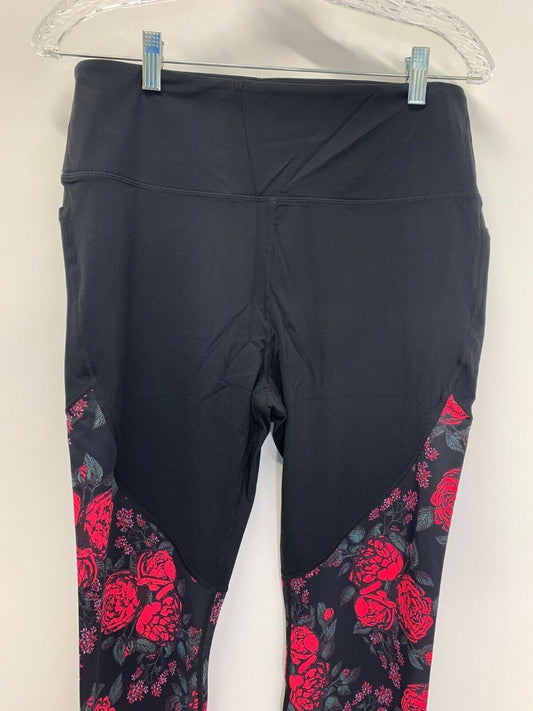 Zyia Womens L 7/8 24" Legging Yoga Pants Electric Crimson Rose Black Floral