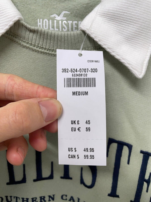 Hollister Womens M Easy Print Graphic Crew Polo Sweatshirt Green Long Sleeve