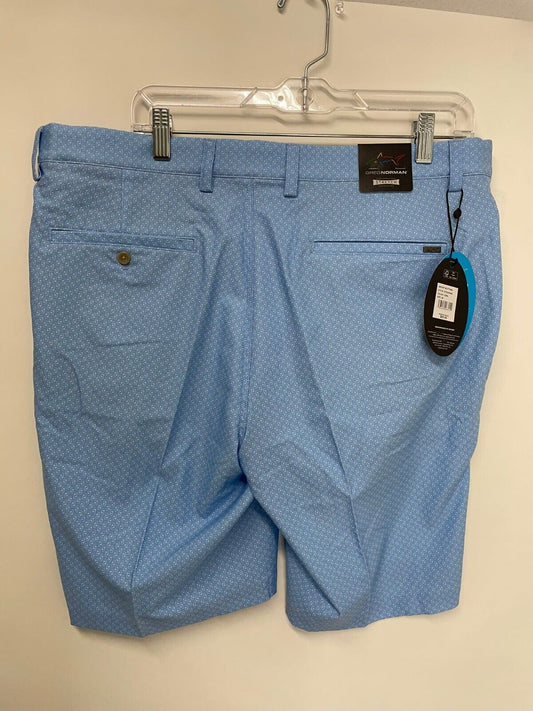 Greg Norman Men 36 Microlux Hybrid Golf Shorts Blue Flag Print Coastal Blue ML75