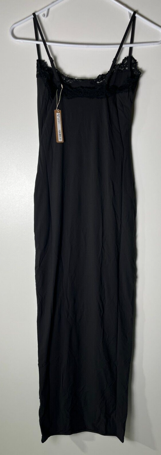 SKIMS Women's S Fits Everybody Lace Long Maxi Slip Dress Onyx Black DR-MAX-4125