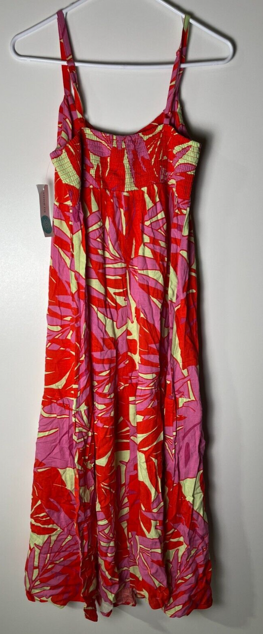 Sanctuary Women's L Floral Dropped Seam Sleeveless Maxi Dress Paradise Pop