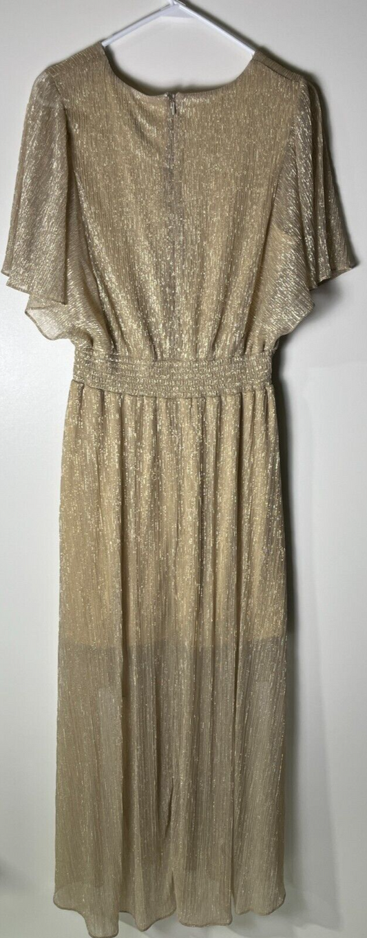 MSK Women's L Flutter Short Sleeve Shimmer V-Neck Evening Gown Gold 93051371P