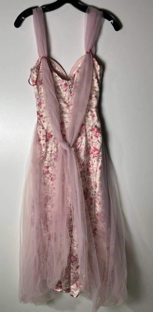 LaceMade Women's S Floral Disc Fairy Corset Dress Baroque Dress Pink Zip Closure