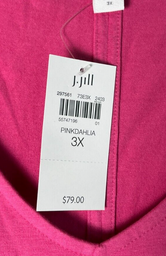 J. Jill Women's 3XL Knit Knee-Length V-Neck Shift Dress Pink Dahlia 297561