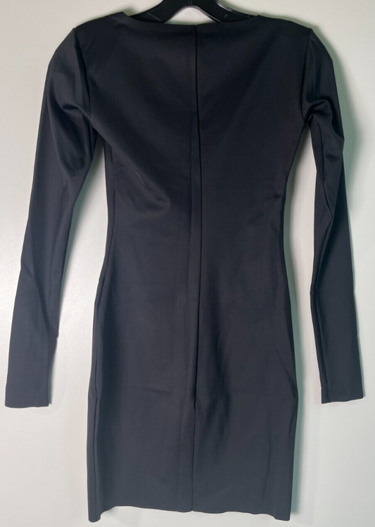 SKIMS Women's M Scoop Neck Long Sleeve Slip Dress Onyx Black SL-MIN-4113