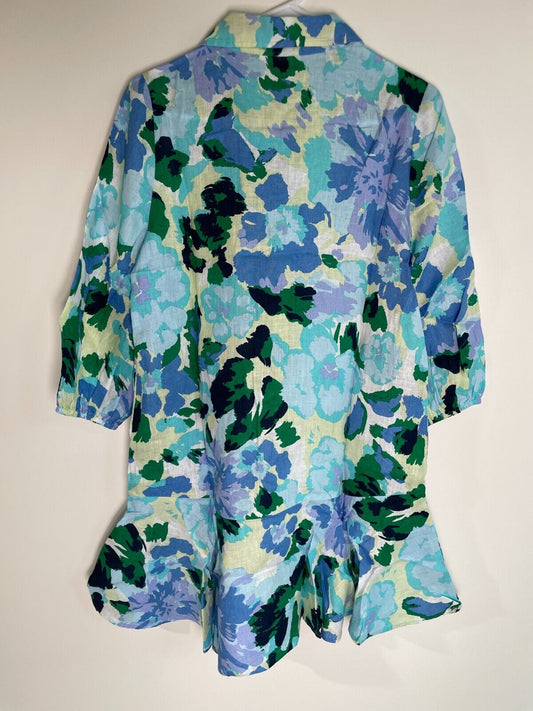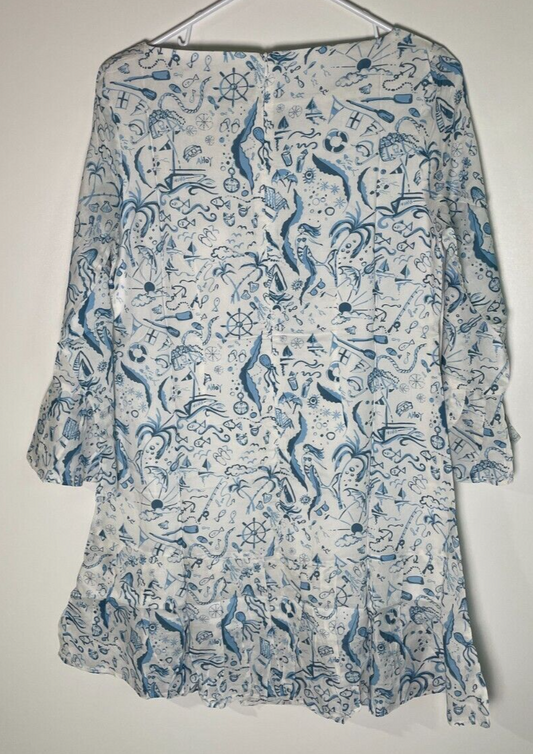 Hiho Women's XL Jeannie Dress Airy Blue Weekend Lined Bell Sleeve Ruffle Hem