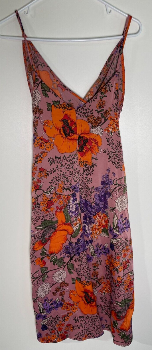 Urban Outfitters Women's S Lily Satin Floral Wrap Midi Dress Rose Pink 58177387