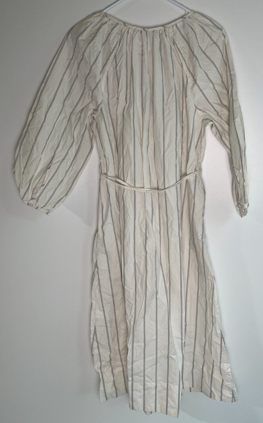 Everlane Women's L The Raglan Sleeve Poplin Striped Midi Dress Beige F-DRS-PPLN