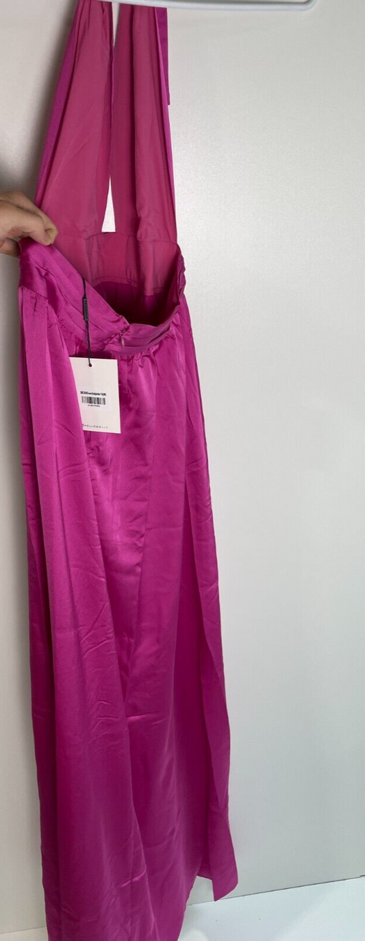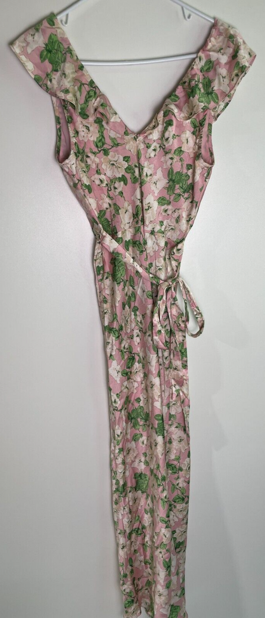 Heartloom Women's S Jacinta Floral Maxi Dress Pink Ruffle V-Neck Lunastar Satin