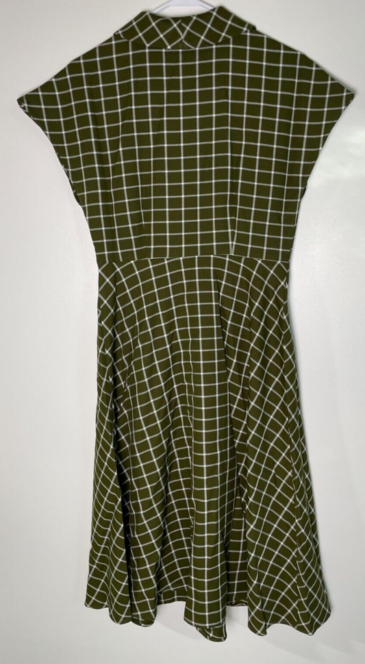 Collectif Women's S Liza Acres Checked Button Front Swing Dress Green AW230815A