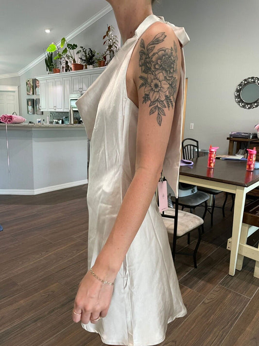 Hello Molly Womens M Proud Friend Dress Champagne Mini Satin Tie Halter Cowl
