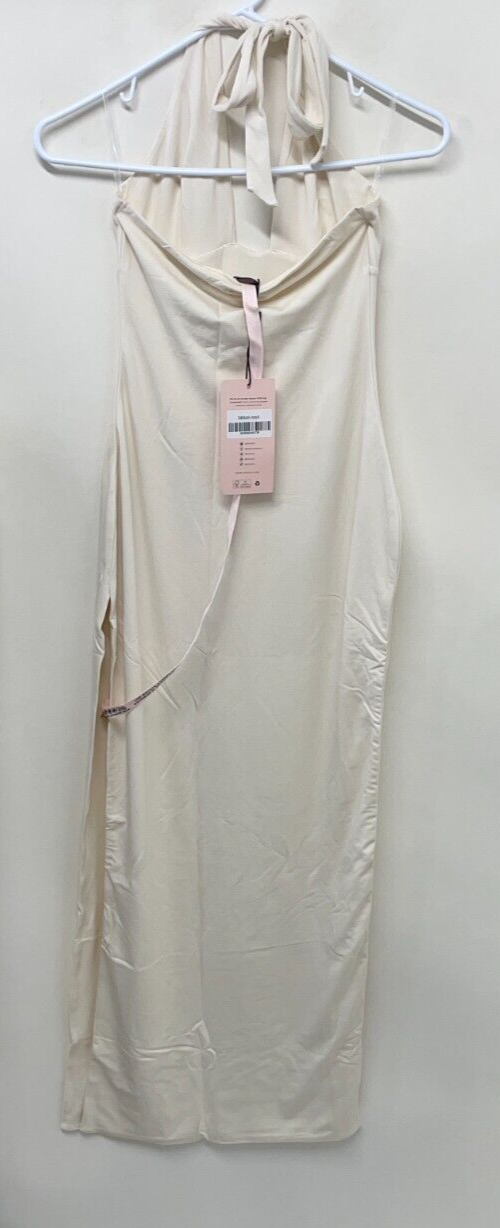 Oh Polly Womens 8 MEI High Split Halter Neck Bodycon Fit Maxi Dress Ivory 5246