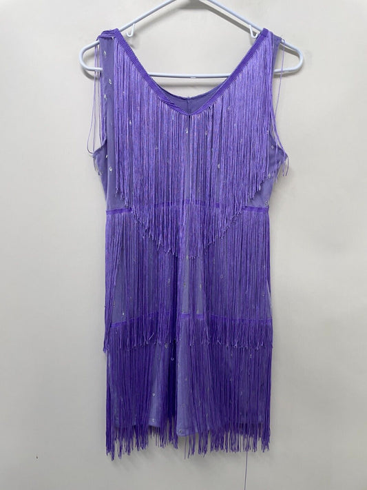Cuase Womens L Fringe Flapper Mini Dress Lavender Sleeveless Gatsby Costume