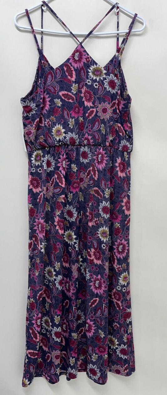 Nine Britton Womens L Floral A-Line Dress Purple 2-Strap Sleeveless Knee-Length