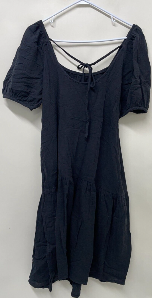 Vero Moda Womens L Natali Nia Puff Sleeve Crinkled Tiered Dress Black 10283128