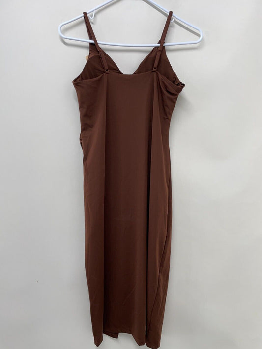 Popilush Womens S Built-In Shapewear Slip Deep V-Neck Split Midi Dress Brown