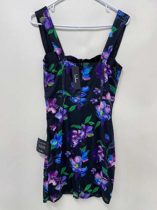 Lulus Womens M Perfect Essence Floral Mesh Bustier Tulip Mini Dress Black 216827
