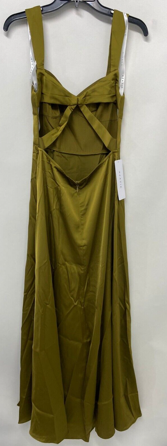 Azazie Womens 2 4 Alexia Stretch Satin Bridesmaid Dress Martini Green A Line