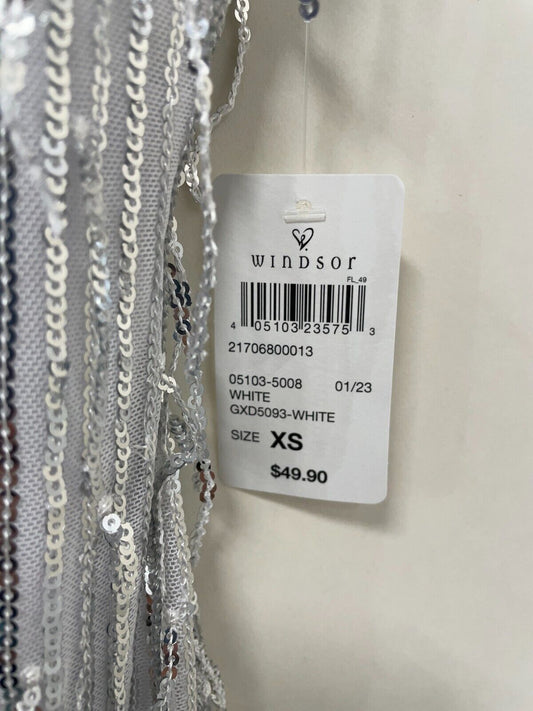Windsor Womens XS Sparkle Soiree Sequin Fringe Mini Dress White 05103-5008