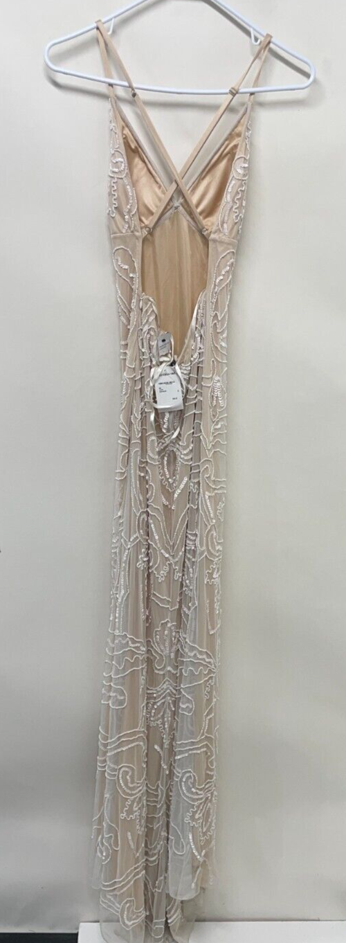 Jump Apparel Womens 3/4 Strappy Beaded Gown Ivory Mesh Maxi Dress 11056A