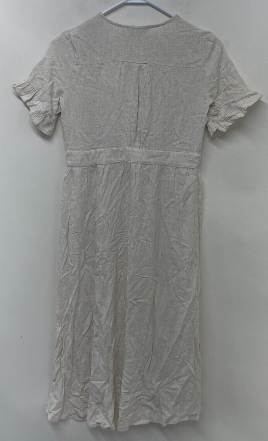 Petal + Pup Womens 4 Miraloma Midi Dress Beige Button-Front V-Neck Linen Natural