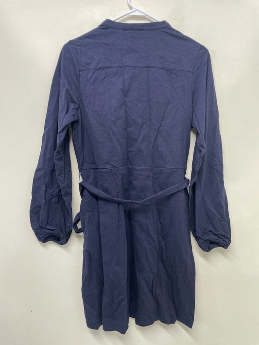 Boden Womens 8R Shirt Dress Navy Solid Cotton Jersey Long Sleeve Belted D0327