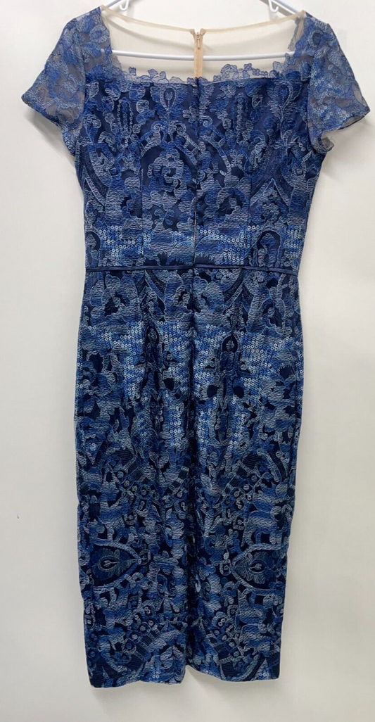 JS Collection Womens 6 Illusion Midi Dress Navy Embroidered Short Sleeve 866966