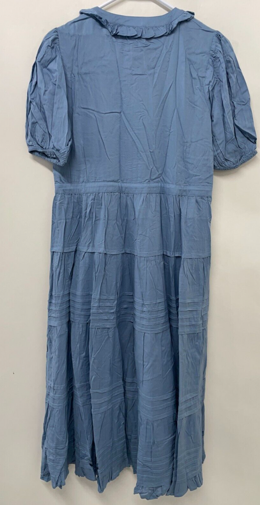 JessaKae Womens XS Heartbreaker Maxi Dress Blue Ruffled Puff Sleeve Cottagecore